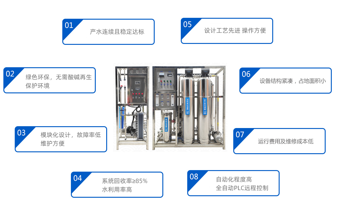 超純水設(shè)備產(chǎn)水水質(zhì)高,可連續(xù)不間斷產(chǎn)水,不因再生而停機,無需酸堿再生無廢液排放,系統(tǒng)回收率高,自動化程度高,運行操作簡單,維護方便