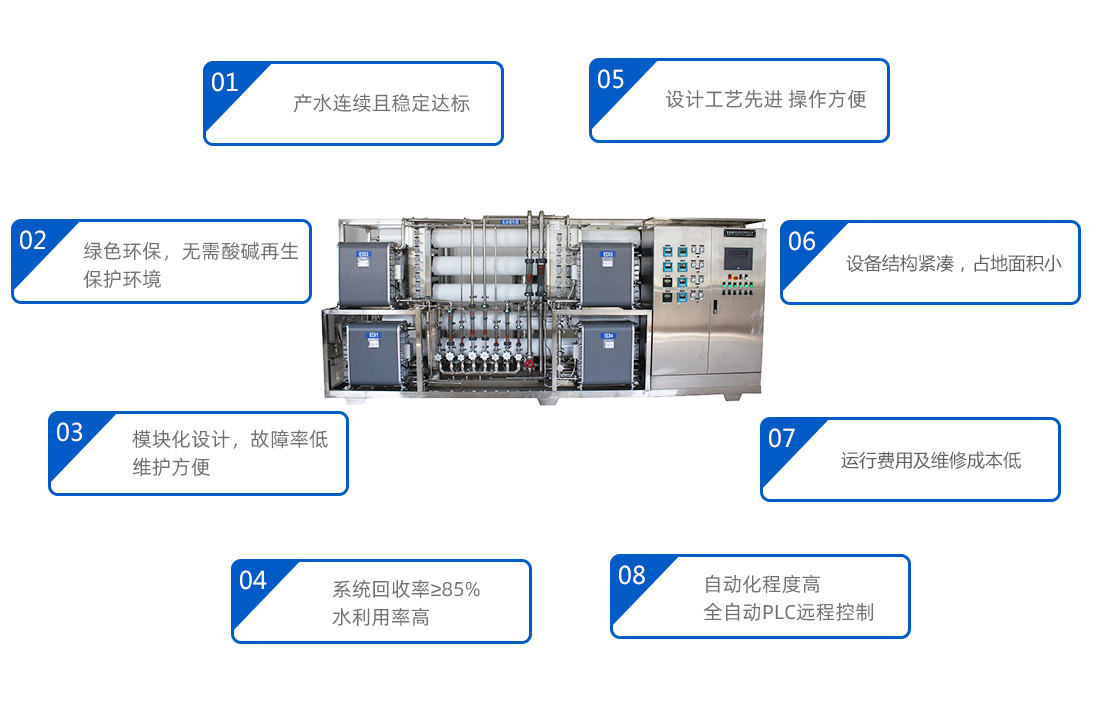 1. 連續(xù)產出超純水,出水水質具有最佳的穩(wěn)定度,以高產率產生超純水(產率可以高達95%)