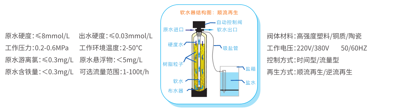 鈉離子交換器是指降低水硬度的設(shè)備,可為深井水或者水源硬度很大的情況下去除水中的鈣、鎂離子含量,使水中鈣鎂離子減少,從而減少熱水設(shè)備和管道結(jié)垢,提高熱利用效率和設(shè)備壽命。