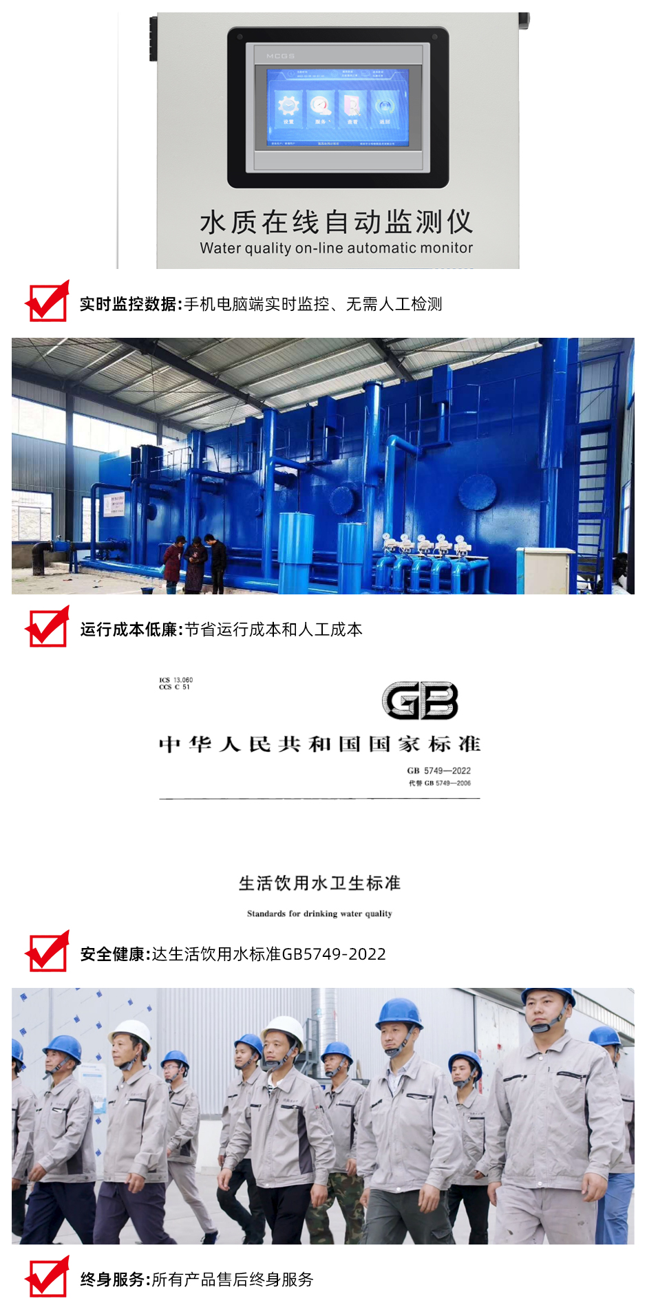 一體化凈水設備采用緊湊的設計,將多個處理單元整合在一個設備中。相比傳統(tǒng)的分散式水處理系統(tǒng),它占用空間更小,更適合安裝在有限空間的地方。