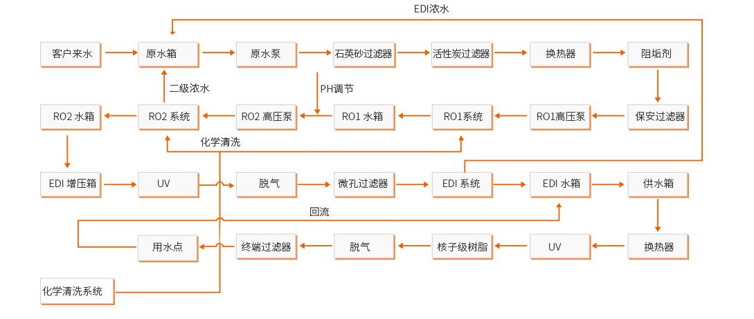 產(chǎn)水水質(zhì):國(guó)標(biāo)/美標(biāo)電子級(jí)超純水